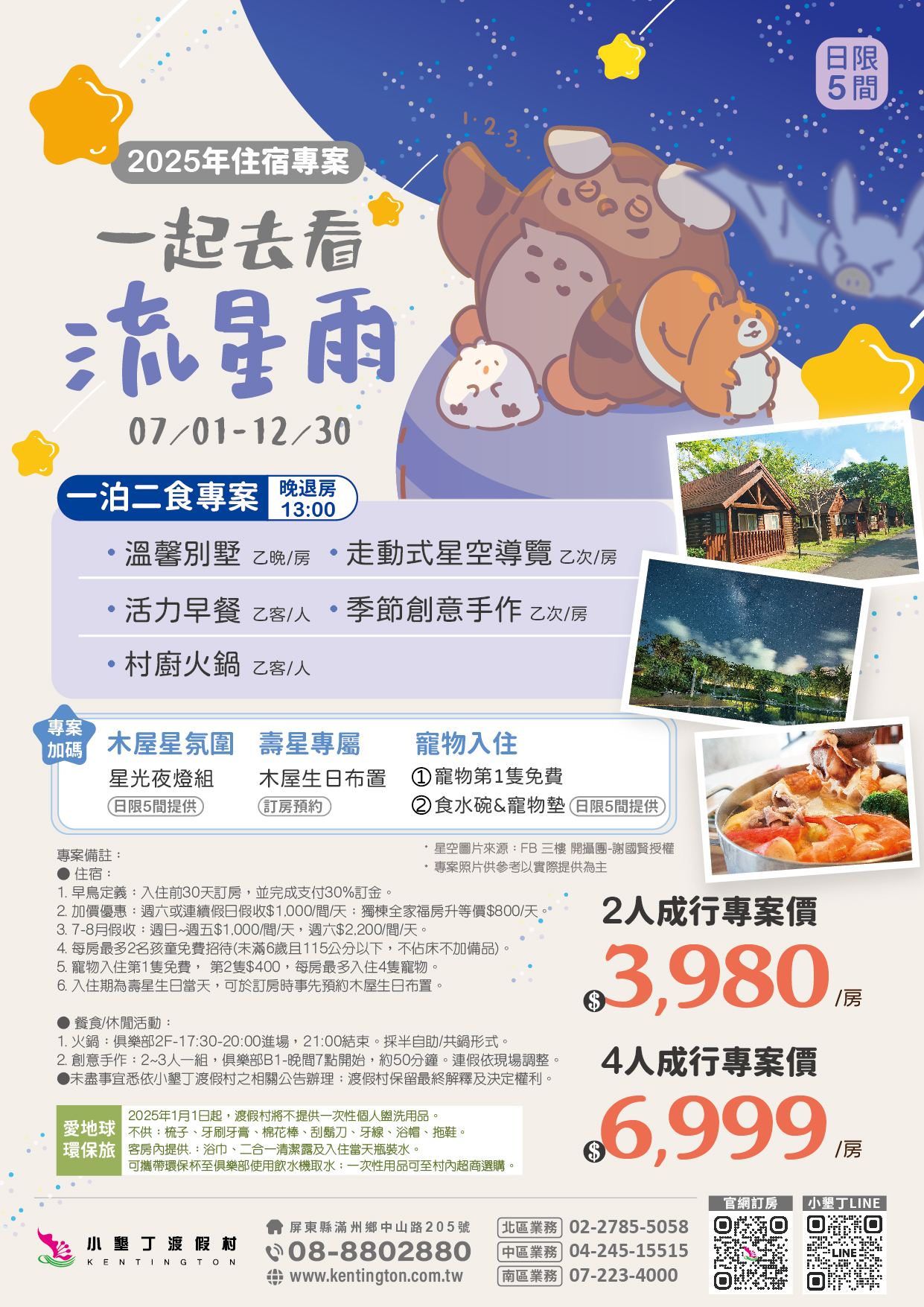 3.壽星生日當天入住期間,贈生日木屋布置。(請於訂房時告知)