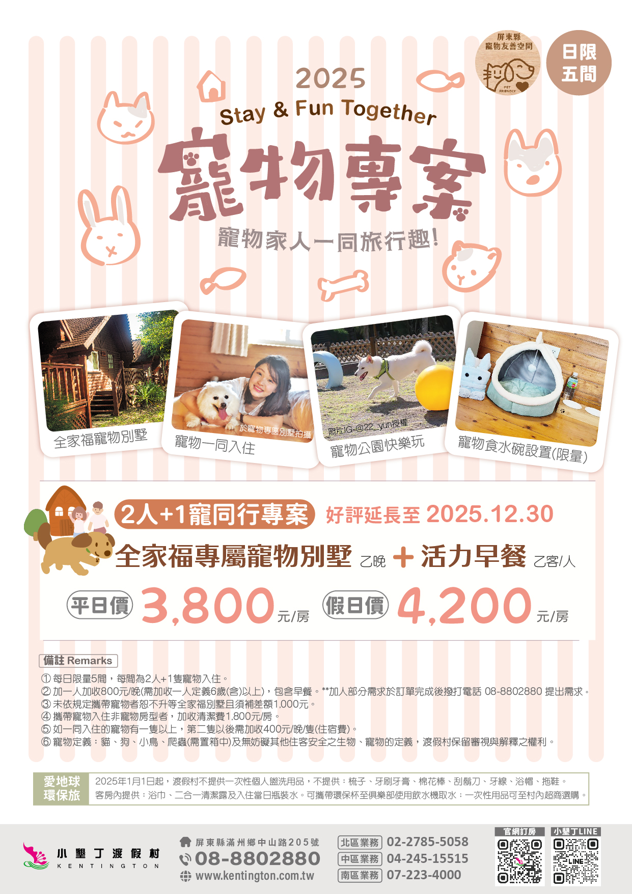 【2025 寵物住宿專案】與毛小孩一同享受假期|寵物友善