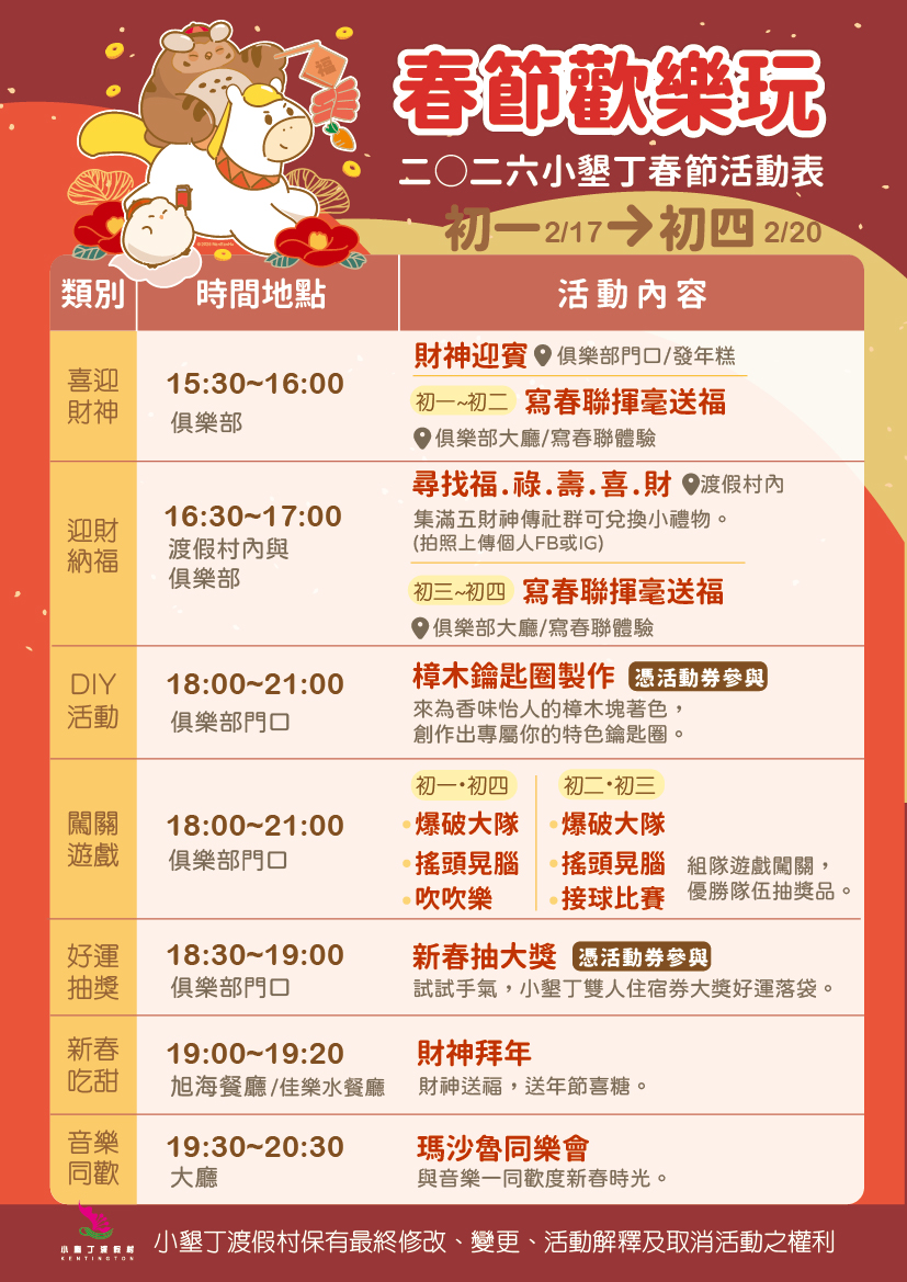 ※若有未盡事宜,悉依小墾丁渡假村之相關公告辦理;小墾丁渡假村保留最終解釋及決定權利。